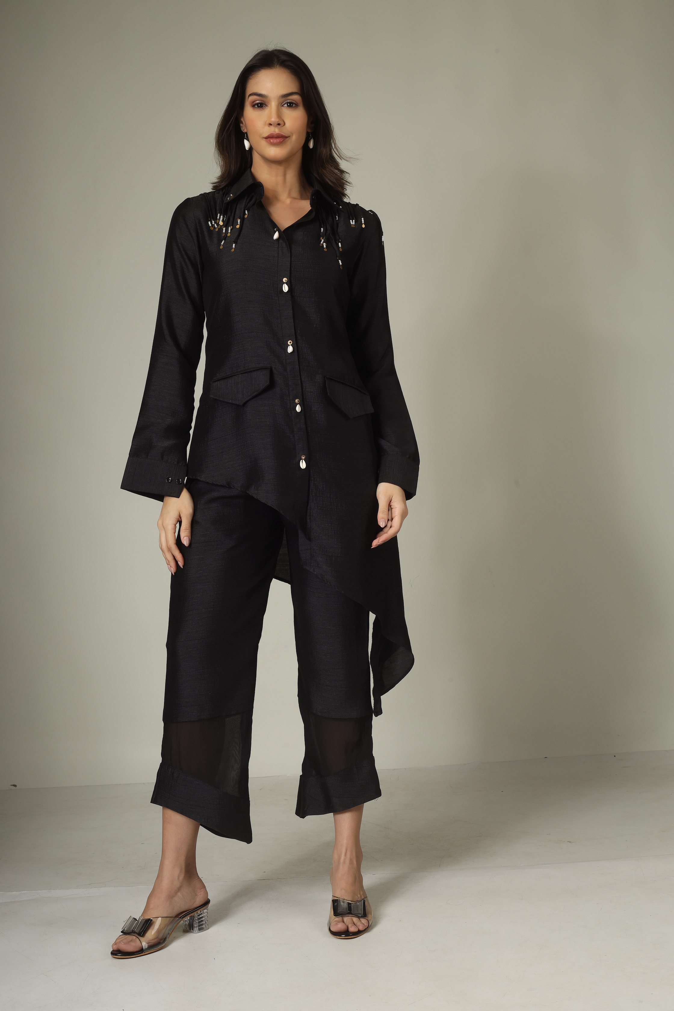 Step into effortless sophistication with the Black Jhaalar Co-Ord Set from the Midnight Hues Collection – Astra by Ayushi.